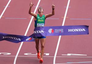 (250920) -- TOKIO, 20 septiembre, 2025 (Xinhua) -- Caio Bonfim, de Brasil, cruza la línea de meta durante la final de 20km de marcha masculina, en el Campeonato Mundial de Atletismo 2025, en Tokio, Japón, el 20 de septiembre de 2025. (Xinhua/Jiang Han) (oa) (ra) (ce)