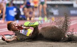 (250920) -- TOKIO, 20 septiembre, 2025 (Xinhua) -- Martha Araújo, de Colombia, compite durante la prueba de salto de longitud del heptatlón femenino, en el Campeonato Mundial de Atletismo 2025, en Tokio, Japón, el 20 de septiembre de 2025. (Xinhua/Song Yanhua) (jg) (rtg) (ce)