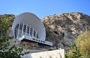 (250920) -- OSH, 20 septiembre, 2025 (Xinhua) -- Imagen del 19 de septiembre de 2025 de personas visitando el museo de la montaña Sulaiman-Too, en Osh, Kirguistán. La montaña Sulaiman-Too fue inscrita en la Lista del Patrimonio Mundial de la UNESCO en 2009. (Xinhua/Li Renzi) (oa) (ra) (ce)