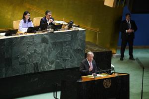 (250923) -- NACIONES UNIDAS, 23 septiembre, 2025 (Xinhua) -- Imagen del 22 de septiembre de 2025 del secretario general de la Organización de las Naciones Unidas (ONU), António Guterres, hablando durante la Reunión de Alto Nivel con motivo del 30º aniversario de la Cuarta Conferencia Mundial de la Mujer, en la sede de la ONU, en Nueva York. La Reunión de Alto Nivel con motivo del 30º aniversario de la Cuarta Conferencia Mundial de la Mujer se llevó a cabo el lunes en la sede de la ONU en Nueva York. (Xinhua/Wu Xiaoling) (jg) (ra) (ce)