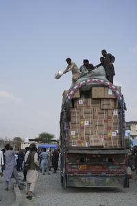 (250923) -- KABUL, 23 septiembre, 2025 (Xinhua) -- Imagen del 22 de septiembre de 2025 de sobrevivientes del terremoto recibiendo suministros de ayuda china, en el distrito de Khas Kunar de la provincia de Kunar, Afganistán. De acuerdo con las autoridades provinciales, más de 2.200 personas perdieron la vida y más de 3.600 resultaron heridas en el terremoto de magnitud 6,0 que sacudió el este de Afganistán a finales de agosto, devastando la provincia de Kunar. China, que proporcionó ayuda humanitaria a las personas afectadas por el sismo en Paktika, en el este, en junio de 2022, y en Herat, en el oeste, en octubre de 2023, respectivamente, ha proporcionado asistencia por valor de 50 millones de yuanes (cerca de 7 millones de dólares) a las familias afectadas por el terremoto en la provincia de Kunar. (Xinhua/Li Ang) (jg) (ra) (vf)
