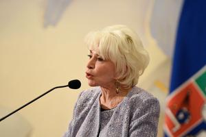 (250923) -- SANTIAGO, 23 septiembre, 2025 (Xinhua) -- La escritora, Isabel Allende, pronuncia un discurso tras recibir la Medalla Rectoral durante una ceremonia, en el Salón de Honor de la Casa Central de la Universidad de Chile, en Santiago, capital de Chile, el 23 de septiembre de 2025. (Xinhua/Jorge Villegas) (jv) (jg) (ra) (ce)