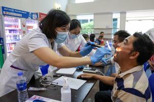 (250923) -- SHENZHEN, 23 septiembre, 2025 (Xinhua) -- Trabajadores médicos comunitarios revisan el estado de salud de los residentes evacuados en el interior de un gimnasio de bádminton de la Universidad de Shenzhen, en Shenzhen, en la provincia de Guangdong, en el sur de China, el 23 de septiembre de 2025. La provincia de Guangdong, en el sur de China, elevó al máximo su nivel de alerta por vientos a las 10:00 horas del martes, ya que se prevé que en las próximas 24 horas el tifón Ragasa toque tierra en las zonas costeras centrales u occidentales de la provincia como un tifón fuerte o un supertifón. (Xinhua/Mao Siqian) (jg) (ra) (vf)