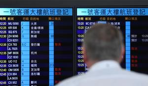 (250923) -- HONG KONG, 23 septiembre, 2025 (Xinhua) -- Un pasajero consulta la información de vuelos en el Aeropuerto Internacional de Hong Kong, en Hong Kong, en el sur de China, el 23 de septiembre de 2025. Muchos vuelos y servicios ferroviarios se han suspendido en Hong Kong después de que el Observatorio de Hong Kong emitiera la Señal de Tormenta o Vendaval del Noroeste número 8 por el supertifón Ragasa el martes por la tarde. La señal número 8 es la tercera alerta más alta del sistema meteorológico de Hong Kong, que tiene cinco niveles para los tifones. (Xinhua/Chen Duo) (oa) (ah) (vf)