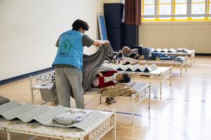 (250923) -- MACAO, 23 septiembre, 2025 (Xinhua) -- Ciudadanos en un centro de refugio de emergencia ante la llegada del supertifón Ragasa a Macao, en el sur de China, el 23 de septiembre de 2025. La Oficina Meteorológica y Geofísica de la Región Administrativa Especial de Macao, China, izó el martes a las 5 de la tarde la señal de ciclón tropical número 8 ante la llegada del supertifón Ragasa. (Xinhua/Cheong Kam Ka) (oa) (ah) (vf)