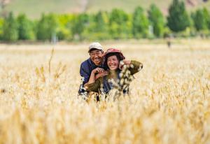 (250923) — LHASA, 23 septiembre, 2025 (Xinhua) — Agricultores son vistos en un campo de cebada de tierras altas, en el distrito de Lhunzhub, en Lhasa, en la región autónoma de Xizang, en el suroeste de China, el 23 de septiembre de 2025. El festival de la cosecha de los agricultores chinos es el primer festival nacional creado específicamente para los agricultores del país. (Xinhua/Tenzin Nyida) (oa) (ah) (vf)