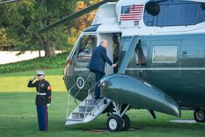 (250923) -- WASHINGTON, 23 septiembre, 2025 (Xinhua) -- Imagen del 22 de septiembre de 2025 del presidente estadounidense, Donald Trump, abordando el Marine One en la Casa Blanca, en Washington D. C., Estados Unidos. Trump firmó el lunes una orden ejecutiva que designa a Antifa como "una organización terrorista doméstica", una medida que algunos expertos consideran carece de autoridad legal. (Xinhua/Hu Yousong) (jg) (ra) (vf)