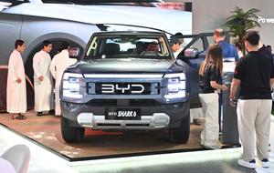 (250922) -- GOBERNACION DE HAWALLI, 22 septiembre, 2025 (Xinhua) -- Personas visitan el estand del fabricante de automóviles chino BYD durante el Salón Mundial del Automóvil, en la gobernación de Hawalli, Kuwait, el 22 de septiembre de 2025. El evento de seis días de duración comenzó aquí el lunes. (Xinhua/Asad) (rtg) (ah) (ce)