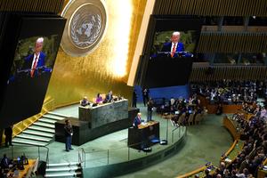 (250923) -- NACIONES UNIDAS, 23 septiembre, 2025 (Xinhua) -- El presidente estadounidense, Donald Trump, pronuncia un discurso durante el debate general del 80º período de sesiones de la Asamblea General de las Naciones Unidas (AGNU), en la sede de la ONU, en Nueva York, el 23 de septiembre de 2025. Representantes de los Estados miembros de la ONU, incluidos cerca de 150 jefes de Estado y Gobierno, se turnarán en el podio de la AGNU para pronunciar discursos sobre cuestiones mundiales durante el debate general de la AGNU que comenzó el martes. (Xinhua/Wu Xiaoling) (jg) (ra) (ce)
