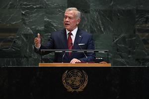 (250923) -- NACIONES UNIDAS, 23 septiembre, 2025 (Xinhua) -- El rey Abdullah II de Jordania, pronuncia un discurso durante el debate general del 80º período de sesiones de la Asamblea General de las Naciones Unidas, en la sede de la Organización de las Naciones Unidas, en Nueva York, el 23 de septiembre de 2025. (Xinhua/Li Rui) (oa) (ah) (ce)