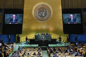 (250923) -- NACIONES UNIDAS, 23 septiembre, 2025 (Xinhua) -- El presidente turco, Recep Tayyip Erdogan, pronuncia un discurso durante el debate general del 80º período de sesiones de la Asamblea General de las Naciones Unidas, en la sede de la Organización de las Naciones Unidas, en Nueva York, el 23 de septiembre de 2025. (Xinhua/Li Rui) (oa) (ah) (ce)
