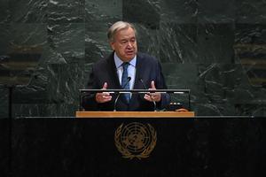 (250923) -- NACIONES UNIDAS, 23 septiembre, 2025 (Xinhua) -- El secretario general de la ONU, António Guterres, pronuncia un discurso en la ceremonia de apertura del debate general del 80º período de sesiones de la Asamblea General de las Naciones Unidas (AGNU), en la sede de la Organización de las Naciones Unidas (ONU), en Nueva York, el 23 de septiembre de 2025. Representantes de los Estados miembros de la ONU, incluidos cerca de 150 jefes de Estado y Gobierno, se turnarán en el podio de la AGNU para pronunciar discursos sobre cuestiones mundiales durante el debate general de la AGNU que comenzó el martes. (Xinhua/Li Rui) (oa) (ah) (vf)