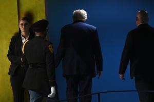 (250923) -- NACIONES UNIDAS, 23 septiembre, 2025 (Xinhua) -- El presidente estadounidense, Donald Trump (2-d), se retira después de pronunciar un discurso durante el debate general del 80º período de sesiones de la Asamblea General de las Naciones Unidas (AGNU), en la sede de la Organización de las Naciones Unidas (ONU), en Nueva York, el 23 de septiembre de 2025. Representantes de los Estados miembros de la ONU, incluidos cerca de 150 jefes de Estado y Gobierno, se turnarán en el podio de la AGNU para pronunciar discursos sobre cuestiones mundiales durante el debate general de la AGNU que comenzó el martes. (Xinhua/Li Rui) (oa) (ah) (vf)