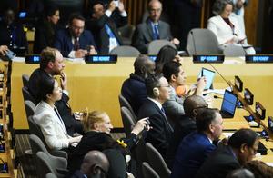 (250923) -- NACIONES UNIDAS, 23 septiembre, 2025 (Xinhua) -- Imagen del 22 de septiembre de 2025 de delegados participando en el evento Momento de los Objetivos de Desarrollo Sostenible (ODS) celebrado en la sede de ONU, en Nueva York. El secretario general de la ONU, António Guterres, pidió el lunes redoblar los esfuerzos para alcanzar los ODS durante el evento Momento ODS celebrado en la sede de Naciones Unidas. (Xinhua/Wu Xiaoling) (oa) (ah) (vf)