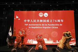 (250923) -- CIUDAD DE PANAMA, 23 septiembre, 2025 (Xinhua) -- Imagen del 22 de septiembre de 2025 de jóvenes realizando la danza de león durante un evento celebrado por la embajada china en Panamá, en la Ciudad de Panamá, capital de Panamá. La embajada china en Panamá celebró el lunes el 76º aniversario de la fundación de la República Popular China con una actividad cultural realizada en la capital panameña. (Xinhua/Xu Yongzheng) (jg) (ra) (vf)