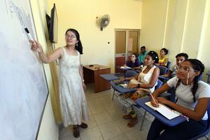 (250924) -- LA HABANA, 24 septiembre, 2025 (Xinhua) -- La profesora china, Zhai Shufang (i), imparte una clase de idioma chino a alumnos cubanos, en el Instituto Confucio de La Habana, en La Habana, capital de Cuba, el 24 de septiembre de 2025. Las becas anuales que concede la Universidad de Lenguas y Culturas de Beijing, conocida también como BLCU, constituyen una efectiva herramienta para reforzar el aprendizaje del idioma chino, coincidieron estudiantes y profesores del Instituto Confucio de La Habana. (Xinhua/Joaquín Hernández) (jh) (jg) (ra) (ce)