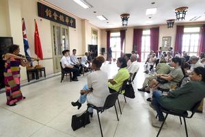 (250924) -- LA HABANA, 24 septiembre, 2025 (Xinhua) -- Imagen del 23 de septiembre de 2025 de miembros de la comunidad china en Cuba asistiendo a un encuentro para celebrar el 65º aniversario del establecimiento de relaciones diplomáticas entre ambos países, convocados por la Federación Casino Chung Wah, en La Habana, capital de Cuba. Miembros de la comunidad china en Cuba se reunieron el martes en el barrio chino habanero para celebrar el 65º aniversario del establecimiento de relaciones diplomáticas entre ambos países. (Xinhua/Joaquín Hernández) (jh) (ah) (vf)