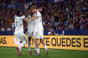 (250924) -- VALENCIA, 24 septiembre, 2025 (Xinhua) -- Imagen del 23 de septiembre de 2025 de jugadores de Real Madrid festejando una anotación durante el partido de fútbol de LaLiga entre Real Madrid y Levante UD, en Valencia, España. (Xinhua/Str) (ah) (ce)