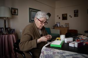(250925) -- BUENOS AIRES, 25 septiembre, 2025 (Xinhua) -- Mirta Calza, una mujer jubilada de 83 años de edad, planifica su medicación semanal en su departamento, en la ciudad de Buenos Aires, capital de Argentina, el 25 de septiembre de 2025. La directora gerente del Fondo Monetario Internacional, Kristalina Georgieva, aseguró el miércoles que la asistencia financiera para Argentina anunciada por el Gobierno de Estados Unidos y otros organismos multilaterales, como el Banco Mundial, fortalecerá el programa que el Fondo sostiene con el país suramericano. (Xinhua/Martín Zabala) (mz) (jg) (ah) (vf)