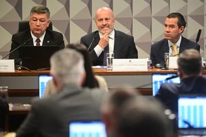 (250925) -- BRASILIA, 25 septiembre, 2025 (Xinhua) -- El empresario Antonio Carlos Camilo Antunes (c) testifica ante la Comisión Parlamentaria Mixta de Investigación del Instituto Nacional de Seguridad Social (INSS), que investiga la apropiación indebida de fondos públicos del INSS, en el Senado Federal, en Brasilia, Brasil, el 25 de septiembre de 2025. (Xinhua/Lucio Tavora (lt) (jg) (ah) (ce)