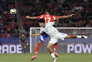 (250928) -- SANTIAGO, 28 septiembre, 2025 (Xinhua) -- Imagen del 27 de septiembre de 2025 de Emiliano Ramos (arriba), de Chile, disputando el balón con Xuan Loke, de Nueva Zelanda, durante el partido correspondiente al Grupo A entre Chile y Nueva Zelanda de la Copa Mundial Sub-20 de la FIFA Chile 2025, en Santiago, Chile. (Xinhua/Jorge Villegas) (oa) (ah)