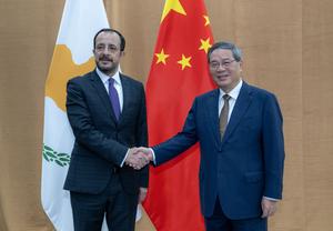 (250925) -- NUEVA YORK, 25 septiembre, 2025 (Xinhua) -- El primer ministro chino, Li Qiang, se reúne con el presidente chipriota, Nikos Christodoulides, al margen del debate general del 80º período de sesiones de la Asamblea General de las Naciones Unidas, en Nueva York, Estados Unidos, el 25 de septiembre de 2025. (Xinhua/Zhai Jianlan) (rtg) (ra) (ce)