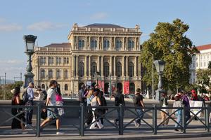 (250928) -- BUDAPEST, 28 septiembre, 2025 (Xinhua) -- Imagen del 27 de septiembre de 2025 de turistas caminando frente al edificio de la Academia Húngara de Ciencias, en Budapest, Hungría. El turismo en Hungría alcanzó su máximo en agosto de 2025 con 2,8 millones de visitantes, un aumento interanual del 5,2 por ciento, impulsado principalmente por un aumento del 10 por ciento en las llegadas de extranjeros, según el Ministerio de Economía Nacional. (Xinhua/Attila Volgyi) (oa) (ah)