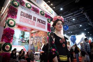 (250929) -- BUENOS AIRES, 29 septiembre, 2025 (Xinhua) -- Una promotora posa frente a un estand de la 29 Feria Internacional de Turismo de América Latina 2025 (FIT), en el predio Ferial La Rural, en la ciudad de Buenos Aires, capital de Argentina, el 29 de septiembre de 2025. (Xinhua/Martín Zabala) (mz) (rtg) (ah)