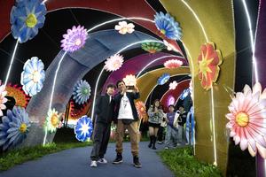 (250927) -- BUENOS AIRES, 27 septiembre, 2025 (Xinhua) -- Imagen del 26 de septiembre de 2025 de un hombre tomándose una fotografía junto a su hijo dentro de una escultura iluminada durante la feria de luces tradicionales chinas Tianfu Festival, en el predio ferial Tecnópolis, en la localidad de Villa Martelli, en la periferia noroeste de Buenos Aires, Argentina. El reconocido festival de linternas chinas Tianfu, una atractiva experiencia multisensorial basada en la cultura de China, fue inaugurado en Argentina, llenando de luz y color las noches primaverales en el país sudamericano. (Xinhua/Martín Zabala) (mz) (jg) (rtg) (vf)