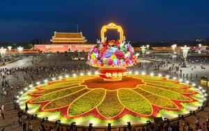 (250926) -- BEIJING, 26 septiembre, 2025 (Xinhua) -- Imagen del 25 de septiembre de 2025 de la vista nocturna de una instalación de "cesta de flores" en la Plaza Tian'anmen, en Beijing, capital de China. La instalación de 18 metros de altura y con forma de cesta de flores se ha colocado en la Plaza Tian'anmen como decoración para las próximas vacaciones del Día Nacional. (Xinhua) (oa) (ra) (ce)