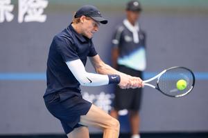 (250929) -- BEIJING, 29 septiembre, 2025 (Xinhua) -- Jannik Sinner devuelve la pelota durante el partido de cuartos de final individuales masculinos entre Jannik Sinner, de Italia, y Fabian Marozsan, de Hungría, en el torneo de tenis China Open 2025, en Beijing, China, el 29 de septiembre de 2025. (Xinhua/Na Yuqi) (rtg) (ah) (vf)