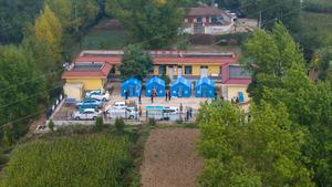 (250927) -- LONGXI, 27 septiembre, 2025 (Xinhua) -- Vista aérea tomada con un dron el 27 de septiembre de 2025 de tiendas de campaña, en la aldea de Zhongshan del poblado de Wenfeng en el distrito de Longxi, en la ciudad de Dingxi, en la provincia de Gansu, en el noroeste de China. Un sismo de magnitud 5,6 ocurrió a las 05:49 del sábado en el distrito de Longxi, en la ciudad de Dingxi, en la provincia de Gansu, noroeste de China, informó el Centro de Redes Sismológicas de China. (Xinhua/Lang Bingbing) (jg) (rtg) (vf)