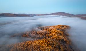 (250929) -- LIGA HINGGAN, 29 septiembre, 2025 (Xinhua) -- Vista aérea tomada con un dron el 29 de septiembre de 2025 del paisaje de otoño del Parque Forestal Nacional Arxan, en Arxan, en la liga Hinggan, en la región autónoma de Mongolia Interior, en el norte de China. (Xinhua/Bei He) (oa) (ah) (ce)