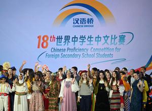 (250926) -- TIANJIN, 26 septiembre, 2025 (Xinhua) -- Imagen del 26 de septiembre de 2025 de la final del 18° concurso de dominio del idioma chino Puente Chino para estudiantes extranjeros de secundaria, en Tianjin, en el norte de China. La final del concurso concluyó en Tianjin. (Xinhua/Zhao Zishuo) (jg) (rtg) (ce)