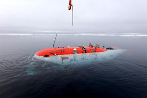 (250926) -- SHANGHAI, 26 septiembre, 2025 (Xinhua) -- Imagen del 6 de agosto de 2025 del sumergible tripulado de aguas profundas Jiaolong de China a punto de sumergirse en el Océano Ártico. El rompehielos de investigación chino Xuelong 2, o Dragón de Nieve 2, llegó a Shanghai el viernes, marcando la culminación de la mayor expedición científica del país al Océano Ártico hasta la fecha. Durante la expedición, los buques Xuelong 2 y Jidi realizaron estudios exhaustivos del entorno marino y llevaron a cabo tareas de apoyo a las inmersiones tripuladas en aguas profundas en la meseta marina de Chukchi, la cuenca de Canadá y la región central del Ártico. (Xinhua/Liu Shiping) (oa) (ra) (vf)