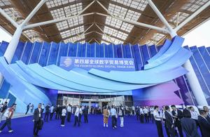 (250926) -- HANGZHOU, 26 septiembre, 2025 (Xinhua) -- Imagen del 25 de septiembre de 2025 de personas visitando la cuarta Exposición Mundial de Comercio Digital, en Hangzhou, en la provincia de Zhejiang, en el este de China. La cuarta Exposición Mundial de Comercio Digital, un evento que promueve el comercio digital y la cooperación industrial entre socios, comenzó el jueves en Hangzhou, con la participación de más de 1.800 expositores. La superficie total de exposición abarca 155.000 metros cuadrados. (Xinhua/Xu Yu) (oa) (ra)