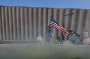 (250926) -- CHICAGO, 26 septiembre, 2025 (Xinhua) -- Dos manifestantes se confrontan con oficiales del Servicio de Control de Inmigración y Aduanas (ICE, por sus siglas en inglés) frente a una instalación del ICE, en Broadview, un suburbio en el oeste de Chicago, Estados Unidos, el 26 de septiembre de 2025. (Xinhua/Vincent D. Johnson) (jg) (rtg) (ce)