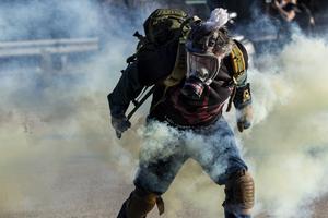 (250926) -- CHICAGO, 26 septiembre, 2025 (Xinhua) -- Un manifestante lanza una lata de gas lacrimógeno de vuelta a oficiales del Servicio de Control de Inmigración y Aduanas (ICE, por sus siglas en inglés) frente a una instalación del ICE, en Broadview, un suburbio en el oeste de Chicago, Estados Unidos, el 26 de septiembre de 2025. (Xinhua/Vincent D. Johnson) (jg) (rtg) (ce)