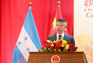 (250926) -- TEGUCIGALPA, 26 septiembre, 2025 (Xinhua) -- Imagen del 25 de septiembre de 2025 del embajador de China en Honduras, Yu Bo, hablando durante una recepción con motivo del 76° aniversario de la fundación de la República Popular China, en Tegucigalpa, Honduras. La Embajada de China en Honduras celebró el jueves una recepción con motivo del 76° aniversario de la fundación de la República Popular China, destacando el respeto mutuo, la cooperación y los valores universales que fortalecen la relación bilateral entre ambas naciones. (Xinhua/Str) (vf) (ce)