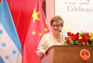 (250926) -- TEGUCIGALPA, 26 septiembre, 2025 (Xinhua) -- Imagen del 25 de septiembre de 2025 de la designada presidencial de Honduras, Doris Alejandrina Gutiérrez, hablando durante una recepción con motivo del 76° aniversario de la fundación de la República Popular China, en Tegucigalpa, Honduras. La Embajada de China en Honduras celebró el jueves una recepción con motivo del 76° aniversario de la fundación de la República Popular China, destacando el respeto mutuo, la cooperación y los valores universales que fortalecen la relación bilateral entre ambas naciones. (Xinhua/Str) (vf) (ce)