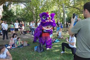 (250926) — BUDAPEST, 26 septiembre, 2025 (Xinhua) — Imagen del 21 de septiembre de 2025 de un bailarín de la danza del león presentándose en el Día de Chan Wu en un parque público, en Budapest, Hungría. El anual Día de Chan Wu en Hungría se ha convertido en una ocasión importante para que las familias y amigos húngaros celebren la cultura china. (Xinhua/Attila Volgyi) (jg) (rtg) (vf)