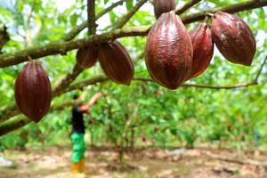 (250926) -- ACEH UTARA, 26 septiembre, 2025 (Xinhua) -- Imagen del 25 de septiembre de 2025 de frutos de cacao vistos en una plantación, en la aldea de Paloh Mampree, en la regencia de Aceh Utara, en la provincia de Aceh, Indonesia. Indonesia ha destinado 9,9 trillones de rupias (alrededor de 604 millones de dólares estadounidenses) para fortalecer la distribución de productos básicos de las plantaciones y mejorar el bienestar de los agricultores. (Xinhua/Fachrul Reza) (oa) (ra) (ce)