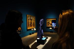 (250926) -- MILAN, 26 septiembre, 2025 (Xinhua) -- Imagen del 25 de septiembre de 2025 de personas observando una creación exhibida en la exposición "Giorgio Armani: Milano, per amore" en la Pinacoteca de Brera, en Milán, Italia. Más de 120 creaciones de Armani/Archivio son exhibidas entre las pinturas de la Pinacoteca de Brera desde el 24 de septiembre de 2025 hasta el 11 de enero de 2026, para honrar la trayectoria estilística del diseñador de moda italiano Giorgio Armani, fallecido el 4 de septiembre de 2025. (Xinhua/Li Jing) (oa) (ra)