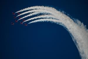 (250929) -- BAHIA DE SAN PABLO, 29 septiembre, 2025 (Xinhua) -- Imagen del 28 de septiembre de 2025 de aeronaves realizando una presentación durante el Espectáculo Aéreo Internacional de Malta, en la Bahía de San Pablo, en Malta. Desde su inicio en 1993, el evento bianual organizado por la Sociedad de Aviación de Malta ha atraído a entusiastas de la aviación de todo el mundo para celebrar su pasión compartida por el vuelo. (Xinhua/Jonathan Borg) (rtg) (ah) (ce)