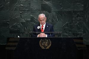 (250926) -- NACIONES UNIDAS, 26 septiembre, 2025 (Xinhua) -- El primer ministro israelí, Benjamin Netanyahu, pronuncia un discurso durante el debate general del 80º período de sesiones de la Asamblea General de las Naciones Unidas, en la sede de la ONU, en Nueva York, el 26 de septiembre de 2025. (Xinhua/Li Rui) (oa) (ra) (ce)