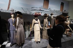 (250927) -- LA HAYA, 27 septiembre, 2025 (Xinhua) -- Imagen del 25 de septiembre de 2025 de una visitante observando trajes expuestos durante un vista previa para los medios de comunicación de la exposición "Titanic & Moda: El Ultimo Baile", en La Haya, Países Bajos. La exposición, que estará abierta al público desde el sábado hasta el 25 de enero de 2026, reúne alrededor de 15 trajes originales de la película "Titanic", ganadora del Oscar en 1997, prendas históricas poco comunes de la década de 1910 procedentes de la colección del museo y obras modernas de unos 25 diseñadores contemporáneos. (Xinhua/Sylvia Lederer) (oa) (ra) (vf)