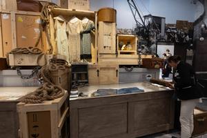 (250927) -- LA HAYA, 27 septiembre, 2025 (Xinhua) -- Imagen del 25 de septiembre de 2025 de una visitante observando las exhibiciones durante un vista previa para los medios de comunicación de la exposición "Titanic & Moda: El Ultimo Baile", en La Haya, Países Bajos. La exposición, que estará abierta al público desde el sábado hasta el 25 de enero de 2026, reúne alrededor de 15 trajes originales de la película "Titanic", ganadora del Oscar en 1997, prendas históricas poco comunes de la década de 1910 procedentes de la colección del museo y obras modernas de unos 25 diseñadores contemporáneos. (Xinhua/Sylvia Lederer) (oa) (ra) (vf)