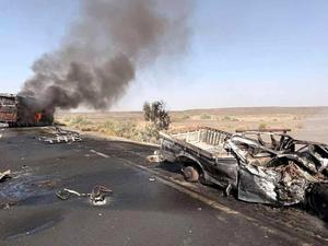 (250928) -- PANJGUR, 28 septiembre, 2025 (Xinhua) -- Imagen tomada con teléfono móvil del 27 de septiembre de 2025 del sitio de un accidente de autopista, en el distrito de Panjgur, en la provincia de Baluchistán, en el suroeste de Pakistán. Al menos ocho personas murieron y tres más resultaron heridas en un accidente de autopista, en el distrito de Panjgur, en la provincia de Baluchistán, en el suroeste de Pakistán el sábado, dijo a Xinhua un funcionario de rescate. (Xinhua/Str) (rtg) (ah)
