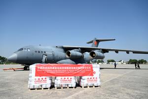 (250929) -- RAWALPINDI, 29 septiembre, 2025 (Xinhua) -- Imagen del 28 de septiembre de 2025 de suministros de ayuda para las inundaciones donados por el Gobierno chino vistos, en el distrito de Rawalpindi, en el este de Pakistán. El primer lote de suministros de emergencia para las inundaciones proporcionados por el Gobierno chino llegó a Pakistán el domingo, según la Autoridad Nacional de Gestión de Desastres. (Xinhua/Ahmad Kamal) (oa) (ah) (vf)