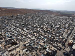 (250929) -- CAMPAMENTOS DE KARAMA, 29 septiembre, 2025 (Xinhua) -- Vista aérea del 25 de septiembre de 2025 de los campamentos de Karama, en la provincia de Idlib, en el noroeste de Siria. En las rocosas colinas del norte de Idlib, cerca de la frontera turca, los campamentos de Karama se extienden como una ciudad de desplazados. (Xinhua/Str) (oa) (ah) (vf)